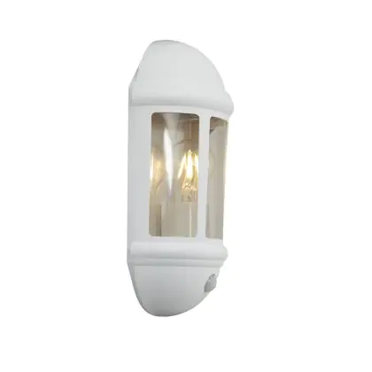 Ansell LED Wall Light Latina Half Lantern White - Suitable for E27 up to 42W | IP65 - Motion and Light Sensor