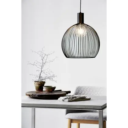 La suspension Aver de chez Nordlux est composée de tiges métalliques qui créent une belle lumière grâce à un jeu d'ombre. La supension a un design ouvert, ce qui est idéal pour installer une ampoule à filament qui sera visible. Cela apporte une touche design à la suspension ! Veuillez noter que vous devez acheter vous-même cette ampoule à filament, qui n'est pas incluse.