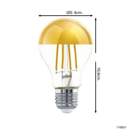 Description Eglo LED Poire E27 Filament Miroir 7.3W 806lm - 827 Blanc Très Chaud | Équivalent 60W