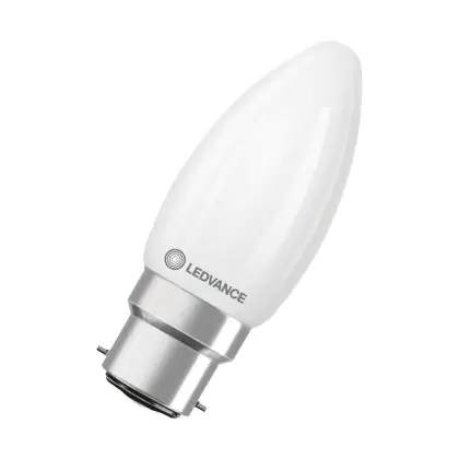 Le Ledvance Classic LED B22 Bougie Dépolie 3.4W 470lm - 827 Blanc Très Chaud | Dimmable - Équivalent 40W est l'alternative parfaite à vos anciennes ampoules halogènes conventionnelles. Alimentées en 230v (et donc sans transformateur), ces ampoules sont fiables et robustes.