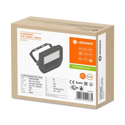 Description Ledvance Projecteur LED GEN 3 Noir 10W 1200lm 100D - 840 Blanc Froid | IP65 - Symétrique