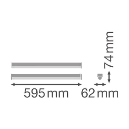 Cette réglette LED d'une longueur de 595 mm est l'alternative durable et économe en énergie à un luminaire fluorescent de même format et avec deux tubes fluorescents de 2x18 Watt.