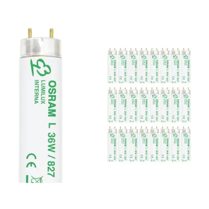 Le Lot 25x Osram Lumilux Interna T8 36W - 827 Blanc Très Chaud | 120cm fait partie de la catégorie des tubes fluorescents, internationalement connue et utilisée à travers le monde. La principale raison de ce succès réside dans l’économie réalisée avec ces lampes. En plus de la grande quantité de lumière produite avec peu d’énergie, ces tubes ont une durée de vie moyenne de 20000 heures. Cette caractéristique leurs permettent de pouvoir être utilisés à la fois dans votre environnement professionnel, mais également dans votre environnement personnel.