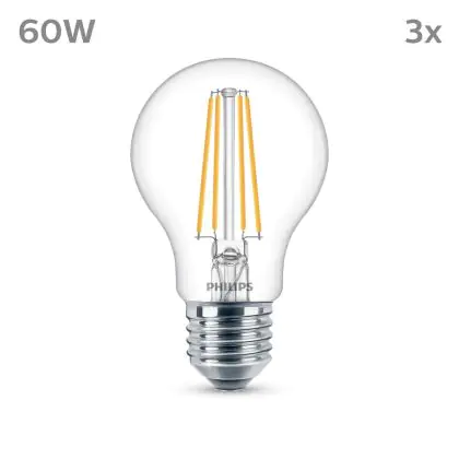 Description Lot 3x Philips Ampoule LED E27 Poire Filament Claire 7W 850lm - 840 Blanc Froid