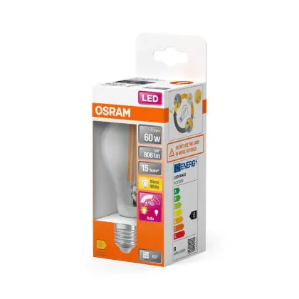Description Osram Classic LED E27 Poire Filament Claire 7.3W 806lm - 827 Blanc Très Chaud | Détecteur De Mouvement Et De Lumière - Équivalent 60W