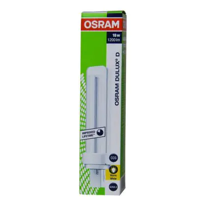 Les ampoules compactes Osram Dulux D sont des lampes offrant une bonne qualité de lumière et très économiques. Elles fonctionnent sur ballast conventionnel et sont caractérisés par un culot à 2 broches. D'une longueur de 130 mm les Osram Dulux D 18W 830 disposent d'un culot G24d-2.