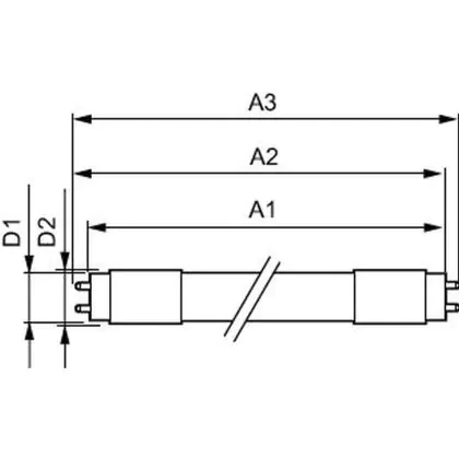 Lorsque vous optez pour la LED, il est important de tenir compte de la longueur et de la puissance de votre tube fluorescent actuel. Ce tube LED de 13.5 W remplace un tube fluorescent conventionnel de 36 W d’une longueur de 1213 mm. Le diamètre reste identique à celui d’un tube fluorescent T8 : 25,4 mm. Le culot est également le même : G13, avec deux broches espacées de 13 mm.