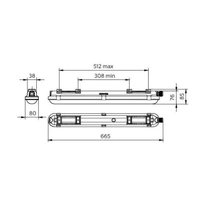 Cette réglette LED d'une longueur de 665 mm est l'alternative durable et économe en énergie à un luminaire fluorescent de même format et avec deux tubes fluorescents de 2x18 Watt.