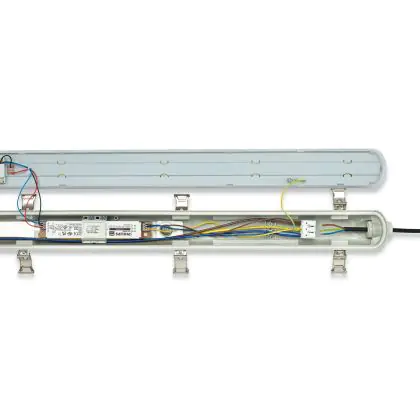 Un élément important des réglettes LED à prendre en compte est la valeur IP. Elle indique dans quelle mesure un produit est étanche à la poussière et à l'eau. L'indice IP44 signifie qu'un appareil est étanche aux éclaboussures et à partir de l'indice IP65, un luminaire LED est totalement étanche à la poussière et à l'eau. La valeur IP de cette réglette LED est : IP65. Si une réglette LED est totalement étanche, vous pouvez parfaitement l'utiliser dans des endroits où elle risque d'être mouillée, comme les écuries, les hangars, les sous-sols, les parkings et les espaces extérieurs.