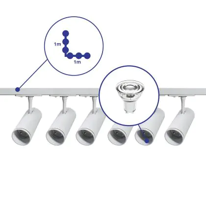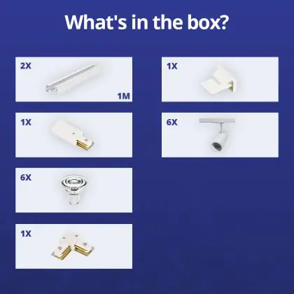 | Fabrikantnaam | Complete L shaped 1-Phase Track Set White incl. 6x Spot fixture + GU10 2700K 3W Dim – 1 x 1 meter i | |