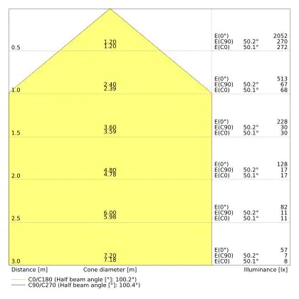De gradenbundel geeft informatie over hoe breed het licht wordt uitgestraald. Dit zit tussen de 0 en 360 graden (D). Hoe kleiner de hoek, hoe specifieker de lichtbundel is. Over het algemeen is een smalle gradenbundel perfect voor sfeer- of accentverlichting, terwijl een brede gradenbundel ideaal is om grote oppervlaktes te verlichten.
