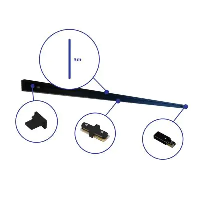 Beschrijving Rail Set 1-Fase 3 Meter Zwart | incl. Eindkap, Voedingsconnector en L-Verbindingsstuk