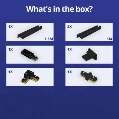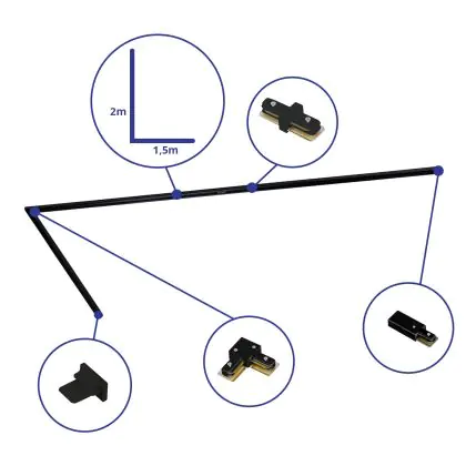 | Fabrikantnaam | Complete L shaped 1-Phase Track Set Black – 1,5 x 2 meter incl. End Cap, Power Connector and L -Con | |